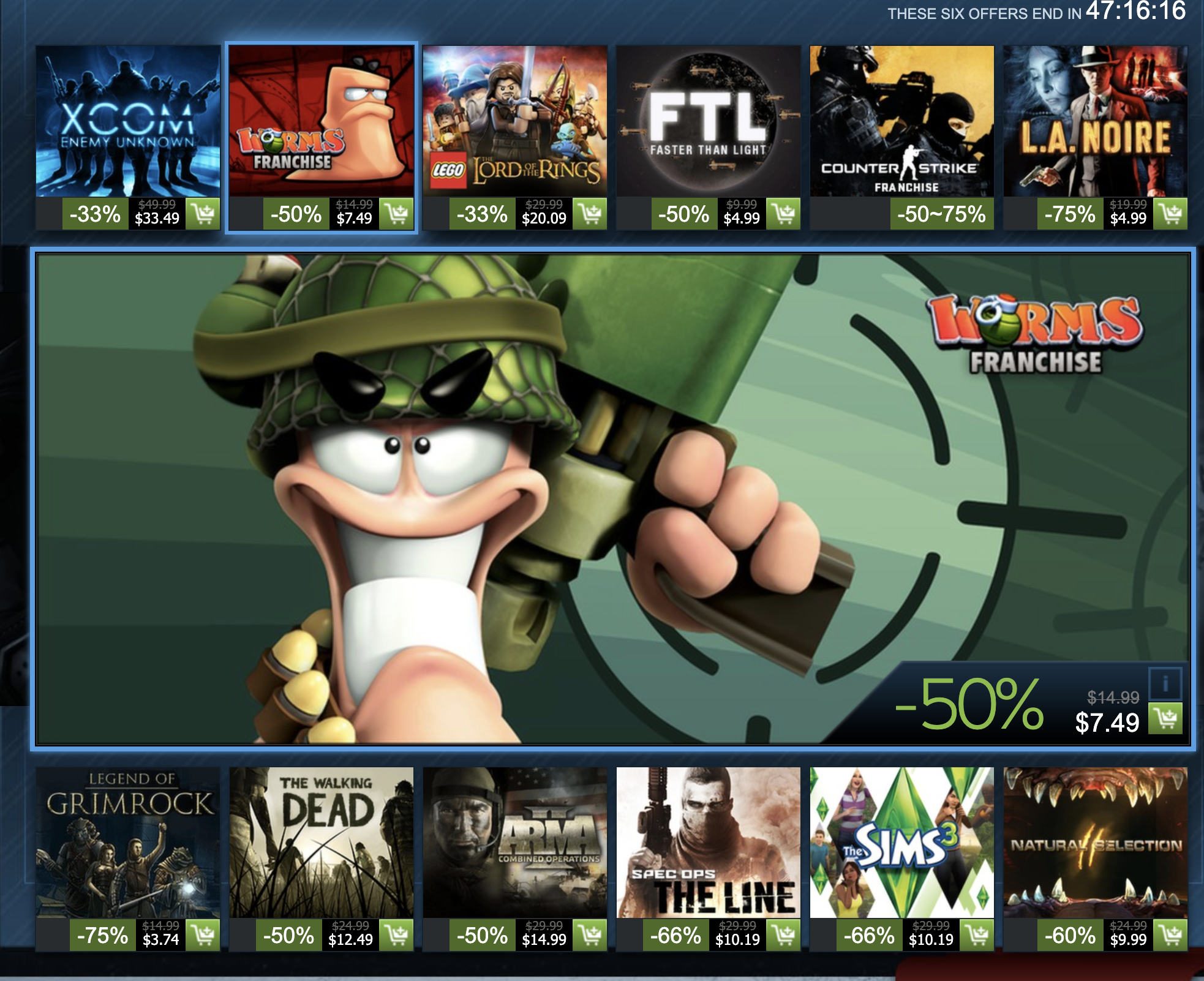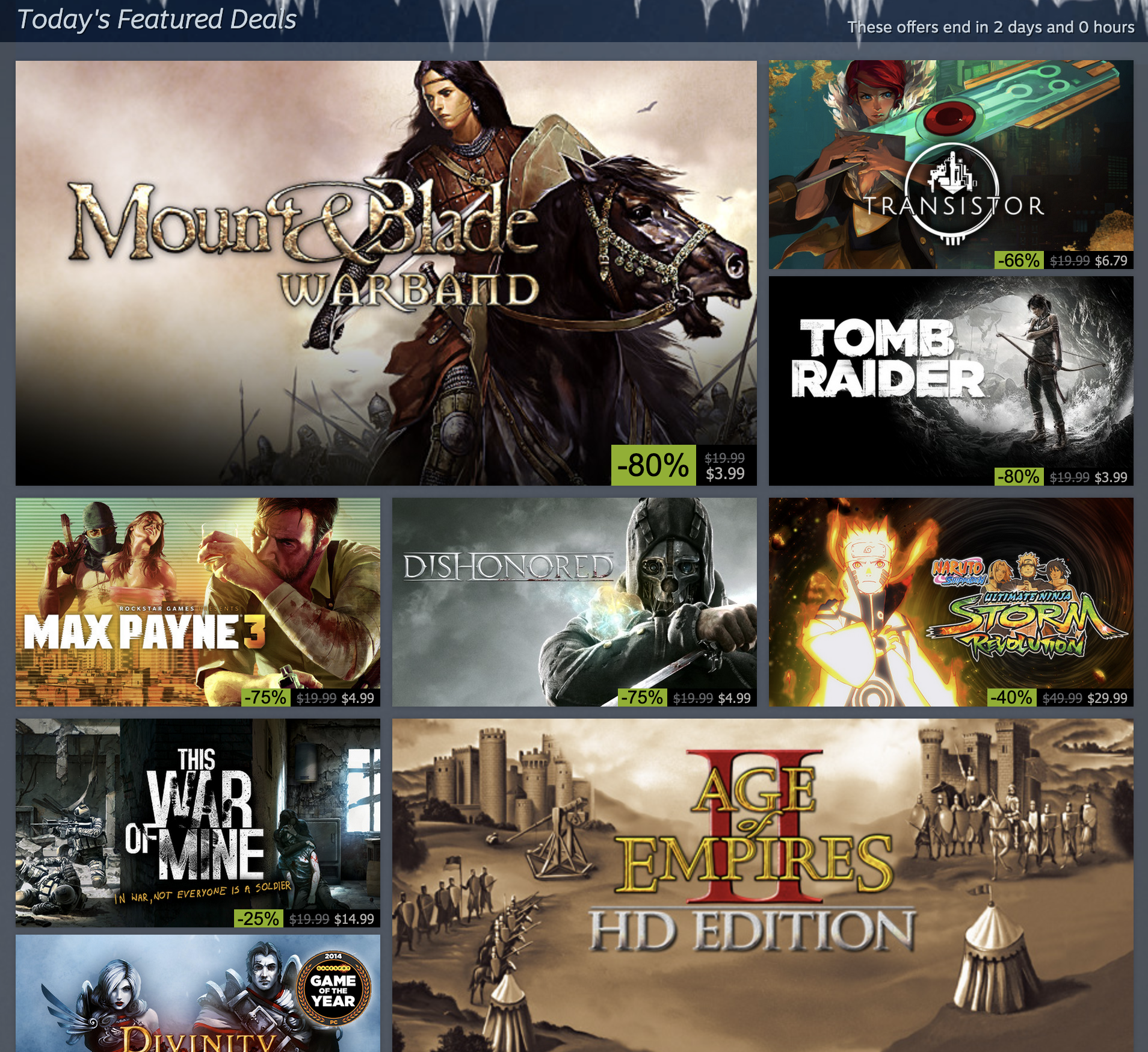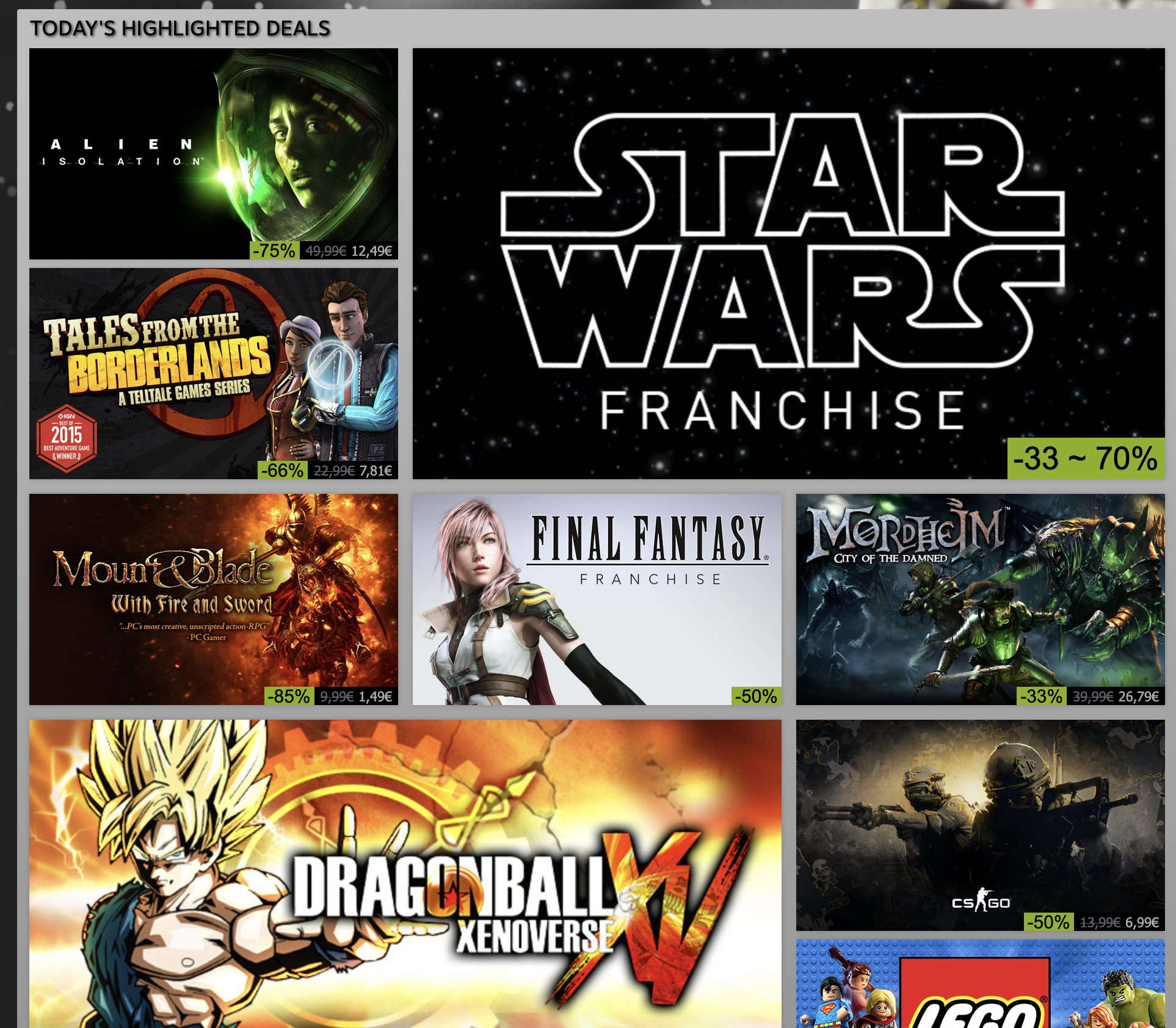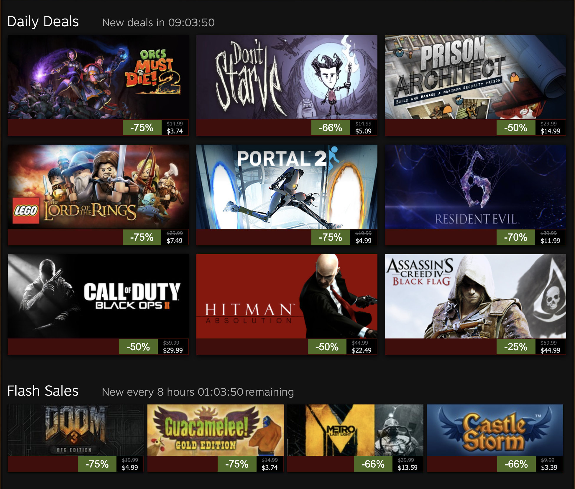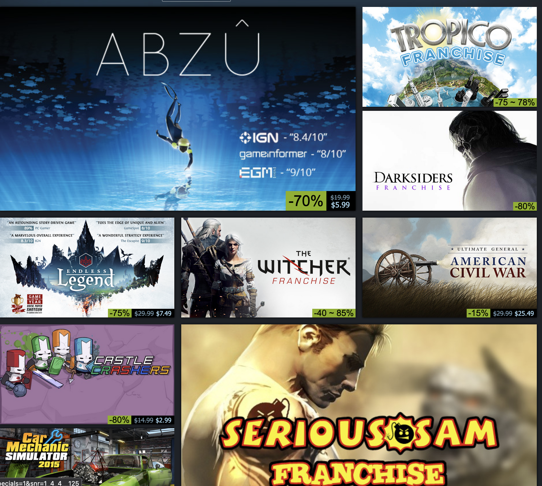 What can I say here? Incredible. Firstly the flash sales giving it the big discounts is nice, I get that the deep discounts probably replaces this, but I feel like these titles are more notable. Secondly, the includsion of so much triple A on the discounts above is pretty nice. Although they aren't heavily discounted, they are mixed in with ones which are. Makes me again feel better about this page.